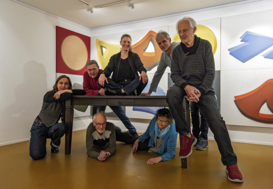 Hier treffen sieben Kunstschaffende mit unterschiedlichsten gestalterischen Sprachen aufeinander und bringen ordentlich Schwung ins Spiel der Ausdrucksformen.